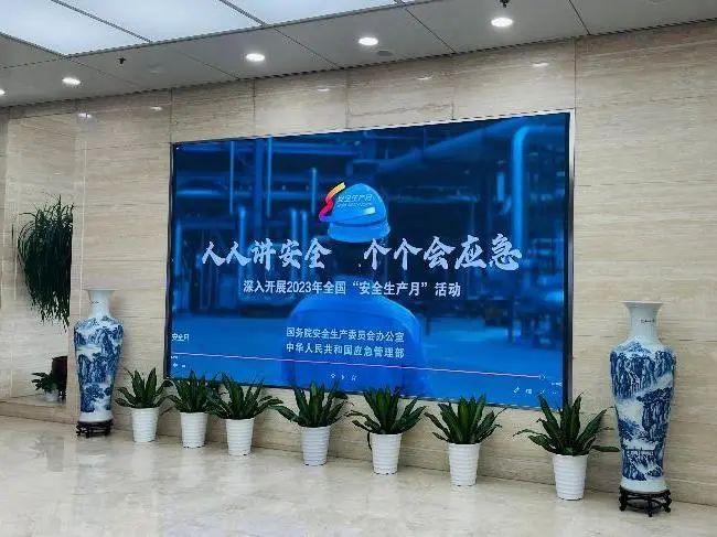 The company set up a safety month theme banner beside the main road, and placed a publicity display rack in the crowded places such as: canteen and office building entrance and exit to concentrate on promoting safety knowledge. Use the company's electronic screen to play safety month related education videos, so that safety education knowledge can be visible, accessible, and friendly to the people.
