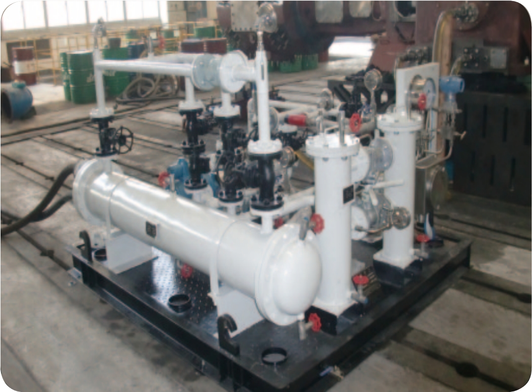 API 614 circulation lubricating oil system is entirely tested in the factory, and it meets the use requirements, and includes barrel type filter, shaft head pump, auxiliary oil pump, base, tube type cooler, oil pressure gauge, switch, temperature instruments and control valve.